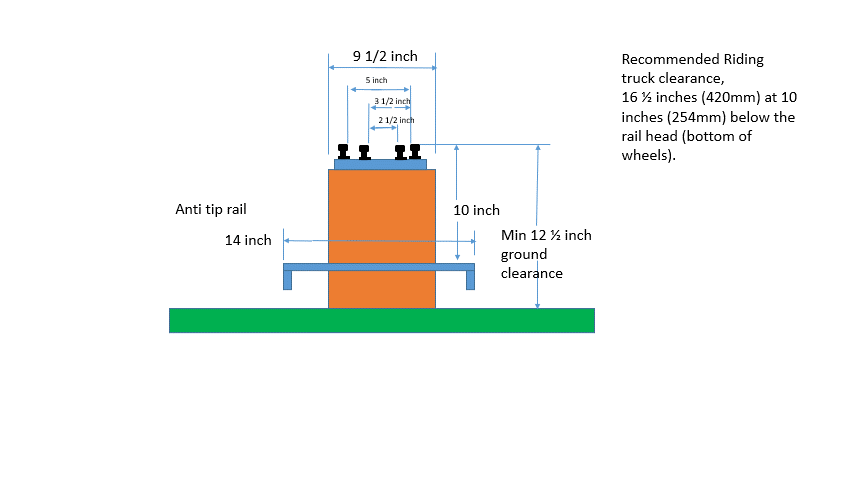 - A new anti-tip rail is being installed and is, at present fitted to approximately 25% of the elevated track. See revised diagram below for dimensions.